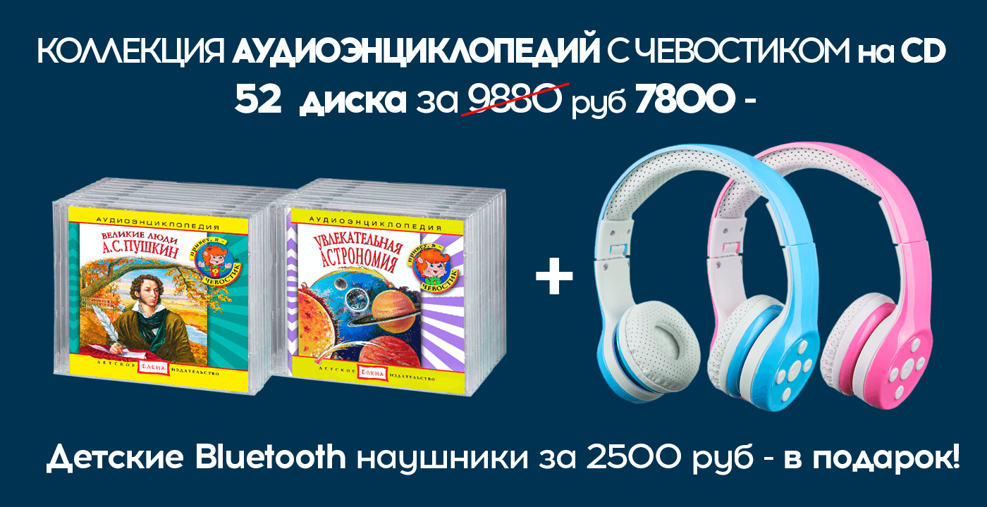 Полная mp3-коллекция аудиоэнциклопедий с Чевостиком (66 аудиокниг). Детские беспроводные наушники в подарок!Комплект состоит из 66-и аудиоэнциклопедий в формате mp3-файлов с характеристиками 320 kbps, 44,1 k... MP3 - 5999 руб. Купить