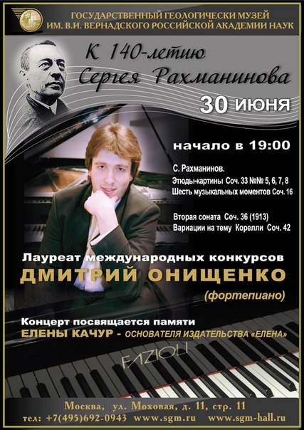 Памяти Елены Качур - основателя издательства "Елена". Дмитрий Онищенко (фортепиано)